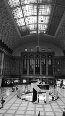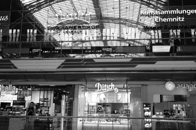 trok er nog iemand aan de noodrem.Maar goed, na bijna twaalf uur in oververhitte trein krijg je dan wel het mooiste station ter wereld: de Hauptbahnhof van Leipzig, een kopstation met allure. |