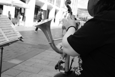 | De straatmuzikante naast me op