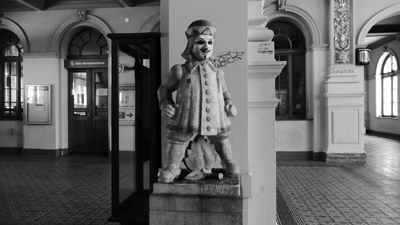 | In de stationshal van het in Thüringen gelegen stadje, werd ik onthaald door het speelkaartenmannetje. |