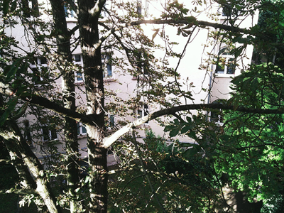 | Uiteindelijk bereik ik de rustige Waldsiedlung waar mijn ateliergenote zich verschanst heeft en waar ook mijn in Leipzig wonende broer wacht. |