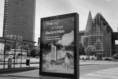 | De Leipziger Volkszeitung, Five auf zu lange Nachrichten, een woordspeling op Pfeife auf zu lange Nachrichten: schijt aan te lang nieuws (grof vertaald). Het staat hier zeer gepast, want het Paulinum rechts had al lang af moeten zijn. |