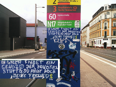 plakkaten op aan te brengen. Zeker in een linkse stad als Leipzig. |