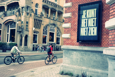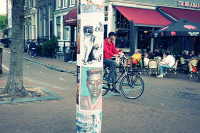 | De stad is een museum en de lantaarnpaal je galerie. Ik ben de naam van de kunstenaar vergeten te noteren. |