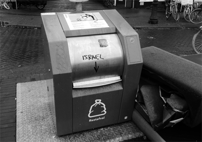 met een pijltje staat er op de vulklep van de vuilcontainers hier in de