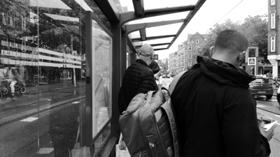 | Er stond een echte Middenwegwind. En dat zorgt voor tweedeling: zij die weten waar ik op doel en zij die dat niet weten. Iedereen tuurt op de tramhalte naar de horizon, maar draait zijn lichaam naar wat komen moet. Of dat goed is voor je nek, bij die wind? Wilders laat nog weten dat het allemaal natuurlijk door de buitenlanders komt. |