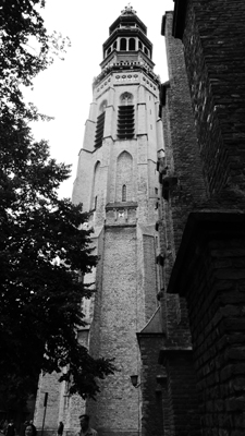 ![]() Niets zo handig als een duidelijk boven alles uittorend oriëntatiepunt in een stad. Vind de kerktoren en je vindt even verder het stadhuis en de markt. Alleen naar ouderwetse frieten - waar ik zo'n zin in had - kon de Lange Jan me niet wijzen. Ook de rolkoffers brachten hier de frieten Spaanse stijl en de boterhammen met een bakje Johma tegen toeristenprijzen. |