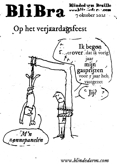'Je heb me foto niet gelijkt.' 'Jawel ma, maar Facebook ligt eruit.' 'Zal wel. Ik heb je geblokt, omdat je me niet lijkt.' 'Nee echt, 't staat op NOS-nieuws. Dat het eruit ligt.' 'Boelsjit. NOS is allemaal feek nieuws. Ik heb ut nerreges op Feesboek geleze dat ut eruit leg. Dus nie waar.' 'Nee echt waar ma.' 'Je heb me foto niet gelijkt. Dus ik ga je onterve. Je ben me dochter nie meer. Kutkind.'
