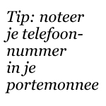 Doe me een plezier: schrijf nu je telefoonnummer in je portemonnee. Bespaart hoop ellende en kosten (voor jezelf). Er zijn veel eerlijke mensen, die op een dag echter besluiten gevonden portemonnees in de gracht te werpen. |
