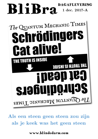 Schrödingers kat op Wikipedia. En om het heel simpel ingewikkeld te maken: iets wat door kijken verandert is niet dat wat je ziet. |